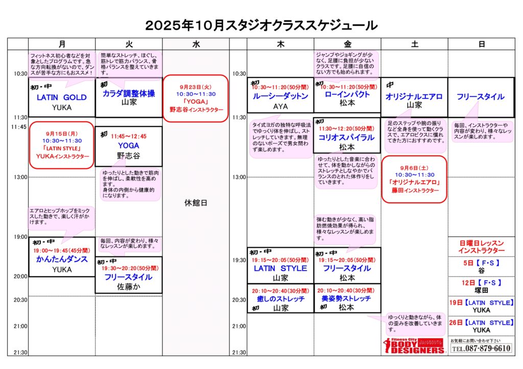2025年10月スタジオレッスンスケジュールのお知らせです!